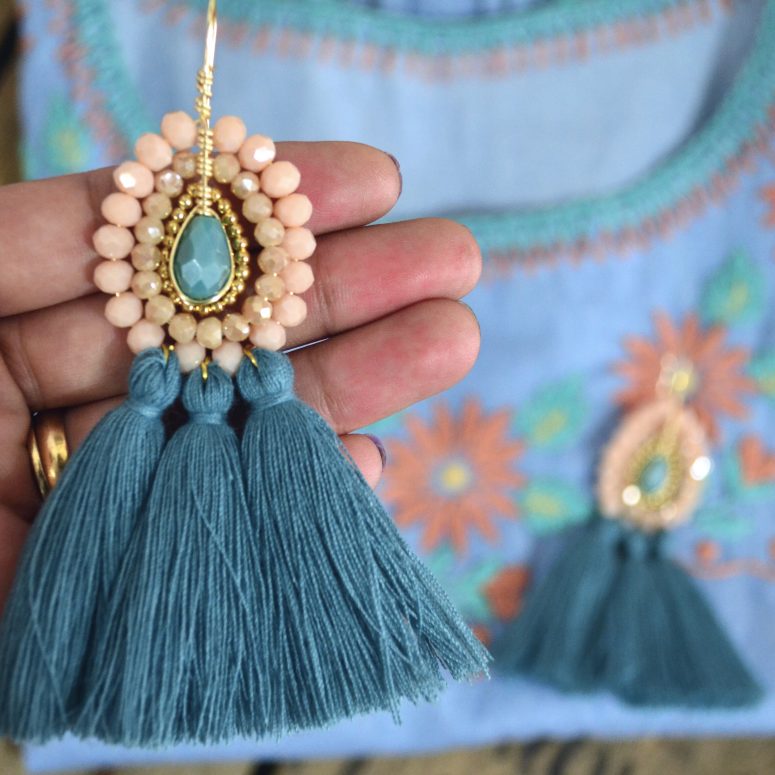 Aretes semi largos, ideales para quienes gustan de accesorios coloridos.
