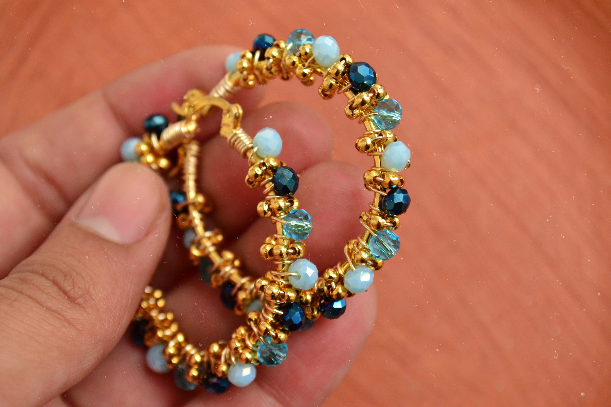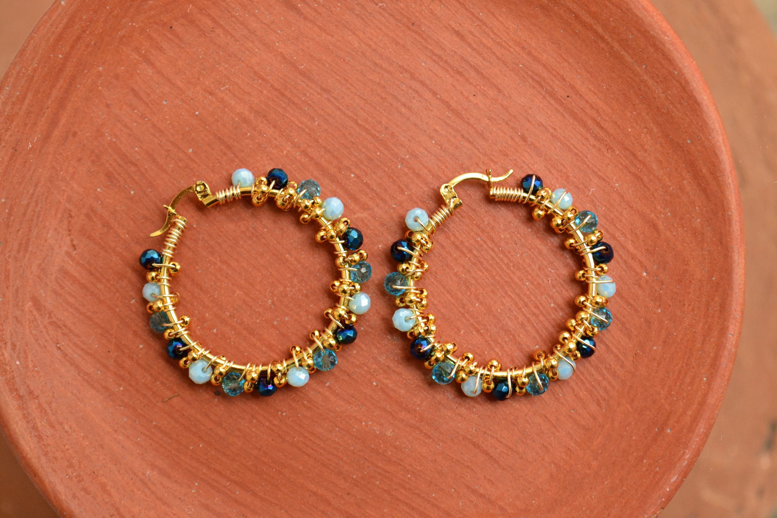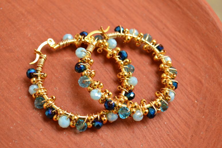 Arracadas con cristales engarzados, tanto la arracada como el alambre con que se engarza son de chapa de oro. Si deseas que sea de otro color, puedes indicarlo al final de tu compra en la sección “Agregar Nota”.