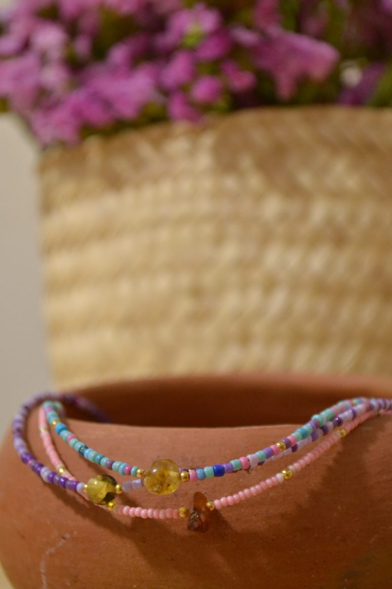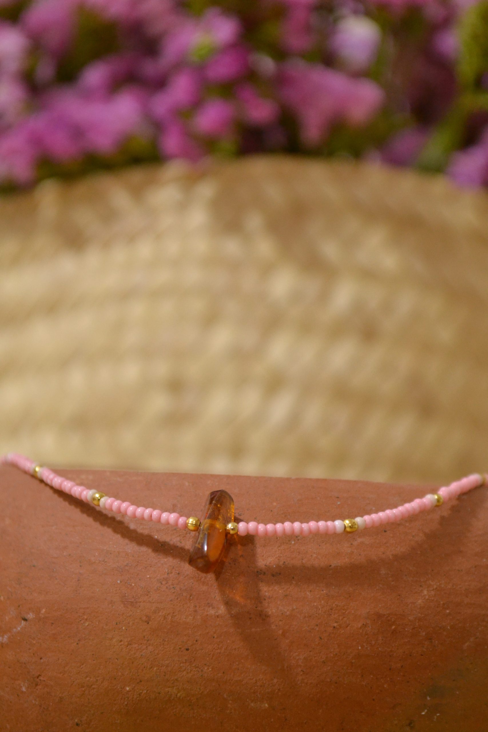 Collares cortos de chaquiras minis con piezas de ámbar auténtico de Simojovel. Elige el color de tu preferencia.