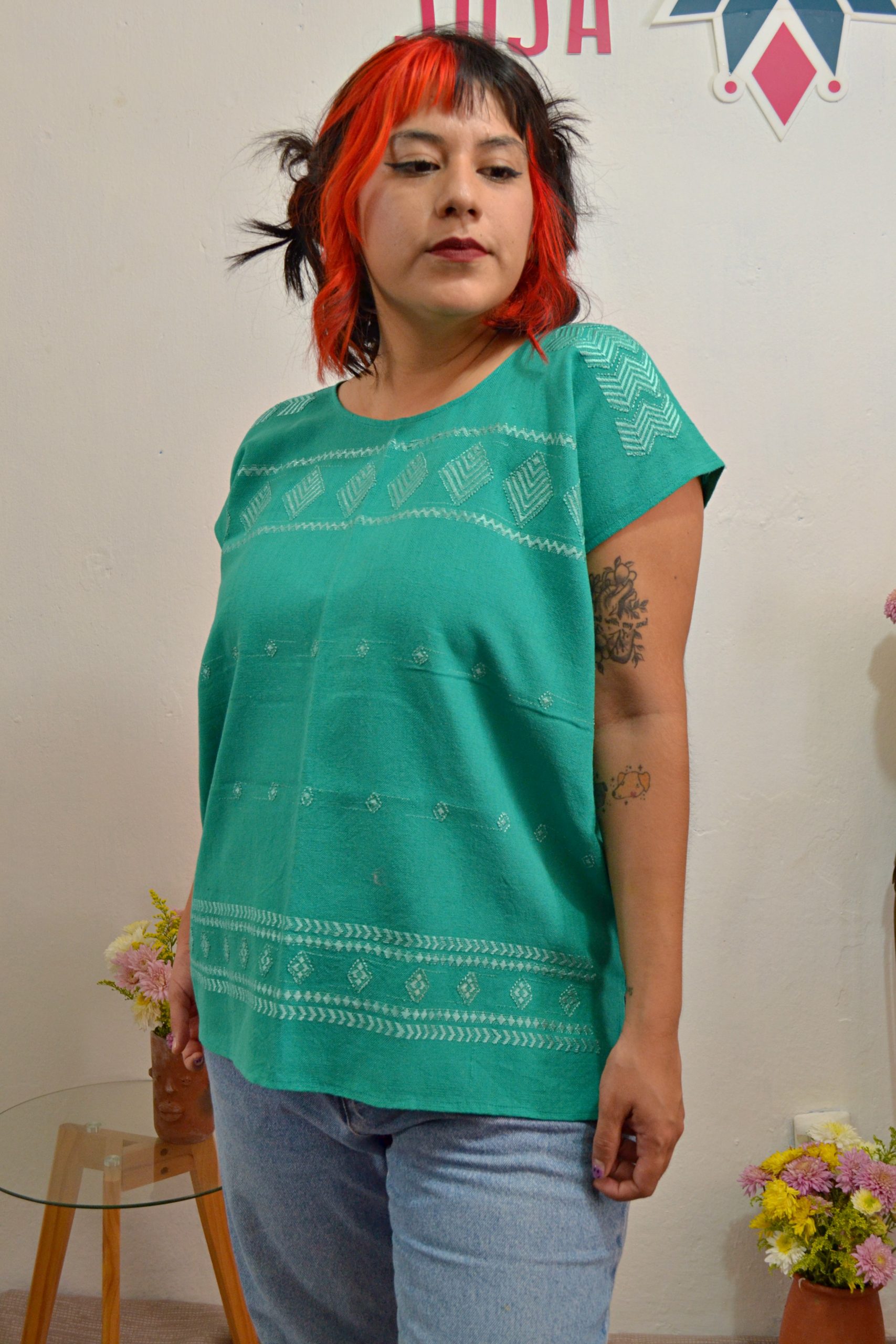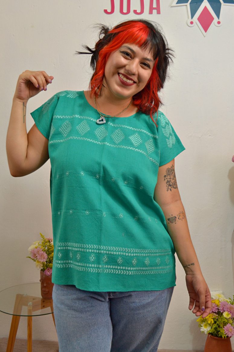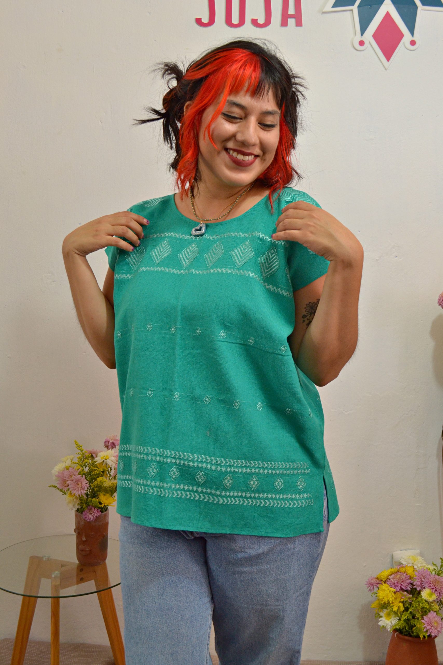 Huipil elaborado en telar de cintura con hilos de algodón, hecho por artesanas de Venustiano Carranza, Chiapas.  El color del huipil puede variar ligeramente debido a la luz y  hora en la que fue tomada la foto y el dispositivo en donde ésta se vea.