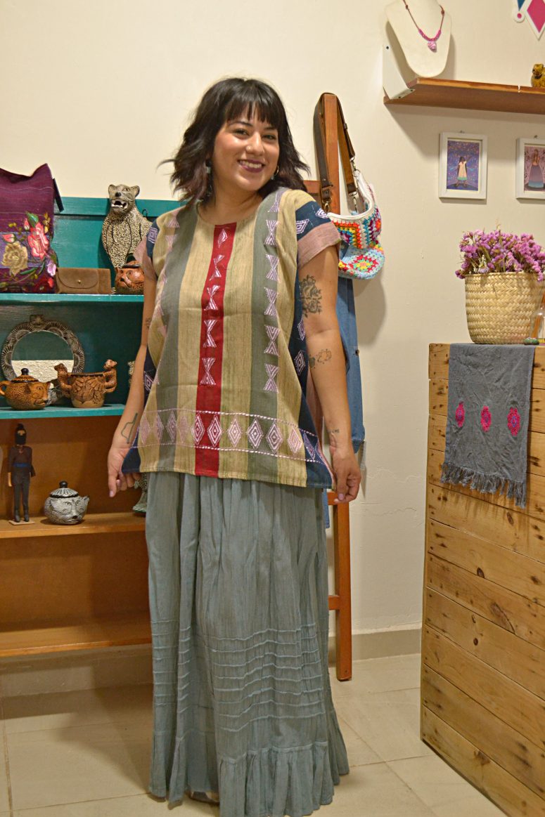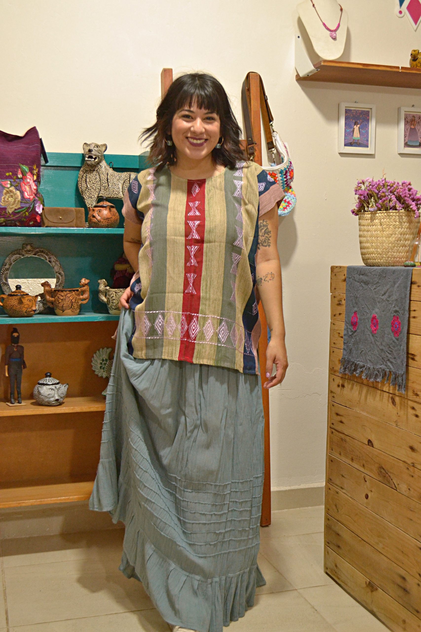 Huipil elaborado tejido y brocado en telar de cintura en Chiapas por artesanas de Venustiano Carranza, Chiapas.