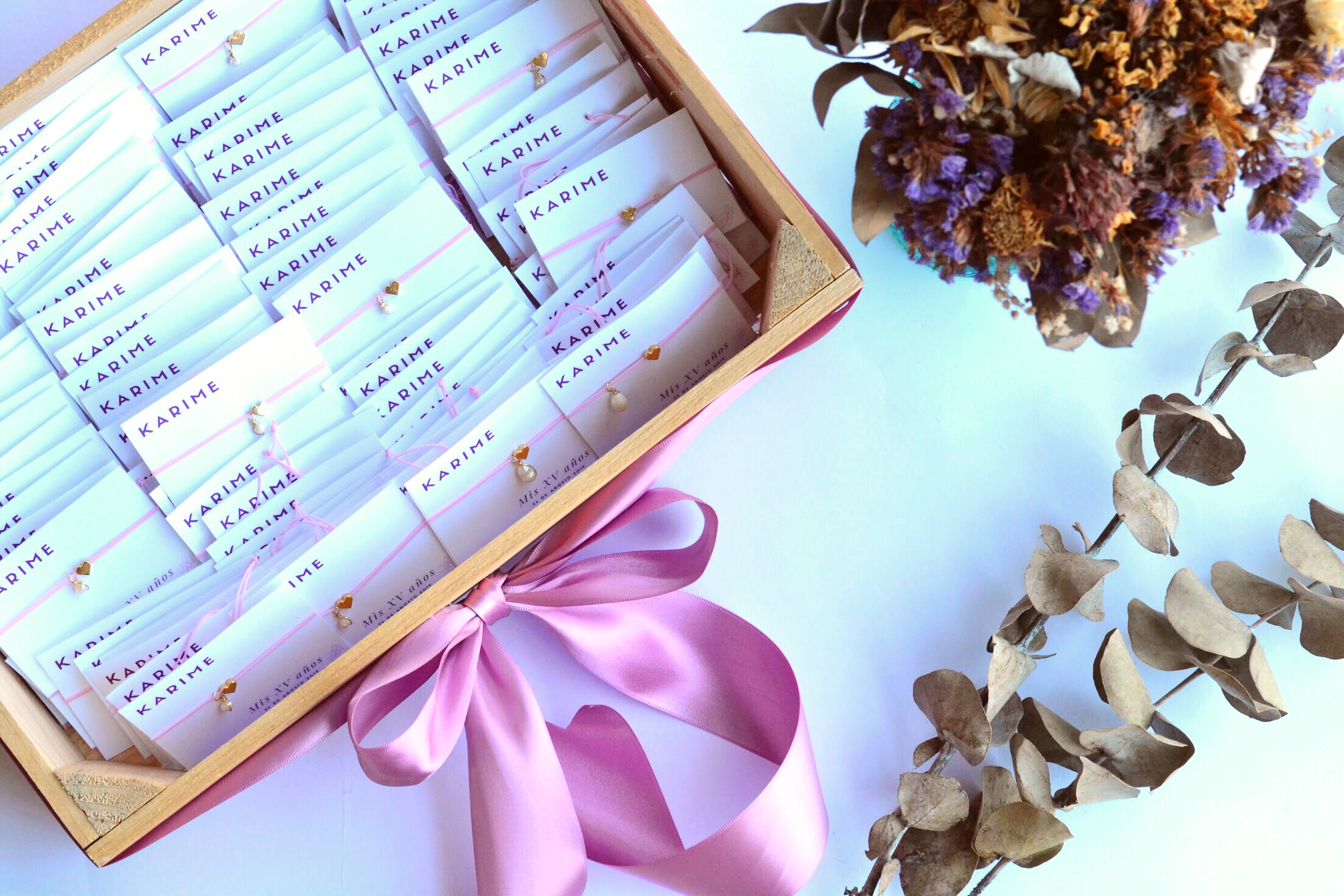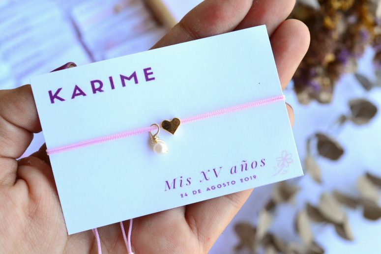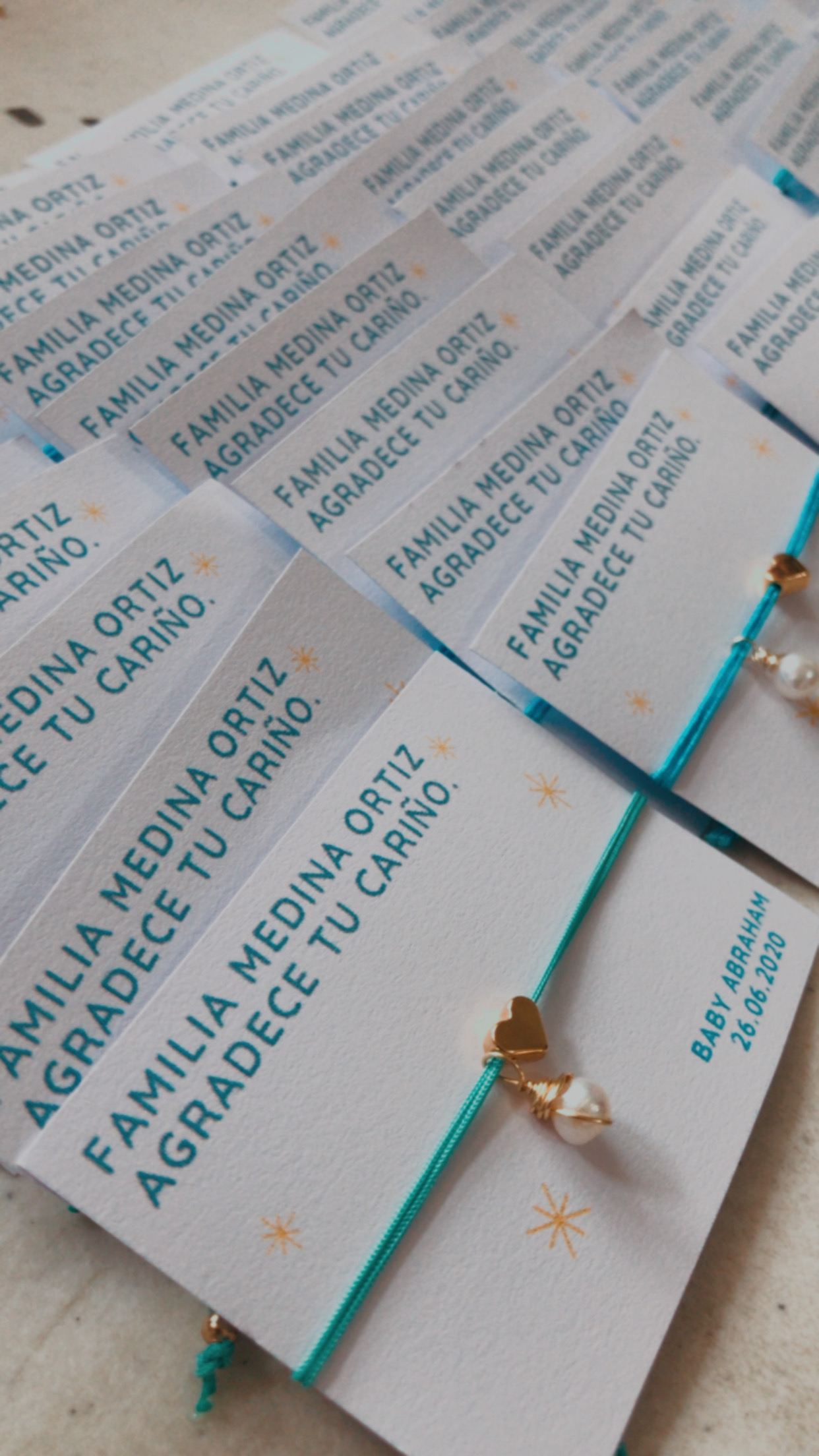 Puedes elegir el color del hilo  y escribir los datos necesarios para la tarjeta en la nota del pedido.