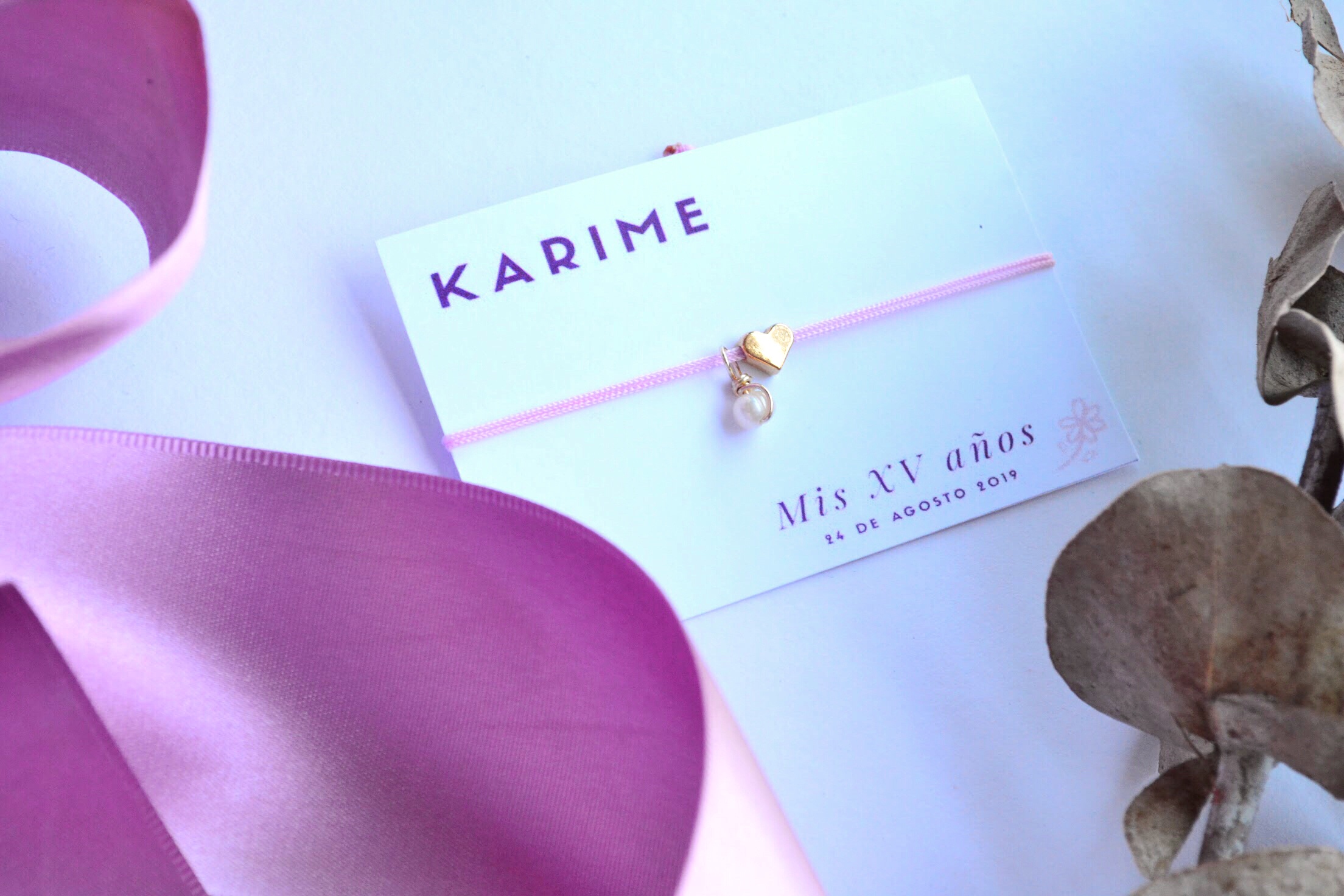 Pulseras delicadas de hilo con dije de chapa de oro y perla de río engarzada.